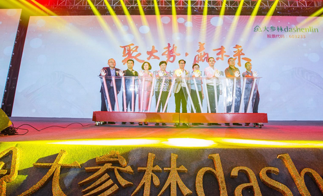 3044am永利药业集团董事长刘景萍女士与大参林医药集团董事长柯云峰先生、中国医药商业协会执行会长付明仲女士等嘉宾共同开启了“聚大势•赢未来"大参林工商合作峰会的大幕。